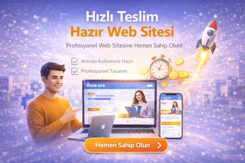 Hızlı Teslim Hazır Web Sitesi, işletmelerin günler hatta haftalarca beklemeden, aynı gün veya birkaç gün içinde yayına alınabilen; profesyonel tasarım, mobil uyumluluk ve SEO altyapısı hazır olan web site çözümleridir. Özellikle zaman kaybetmeden dijital dünyada yer almak isteyen firmalar için en hızlı ve en ekonomik web sitesi modelidir.